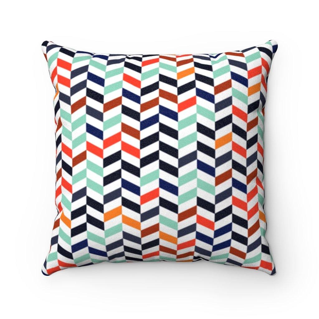 Bright lines in a geometric pattern accent this retro mid century design, to bring you a decorative pillow that delivers vintage Scandinavian style inspiration straight out of the 50's, to your home!