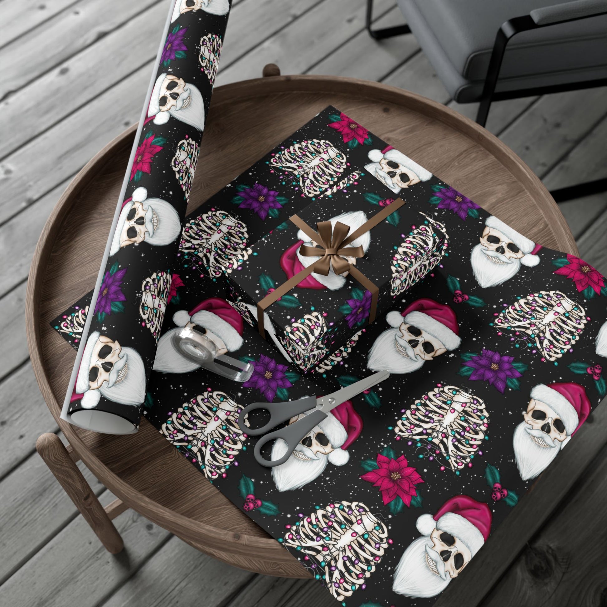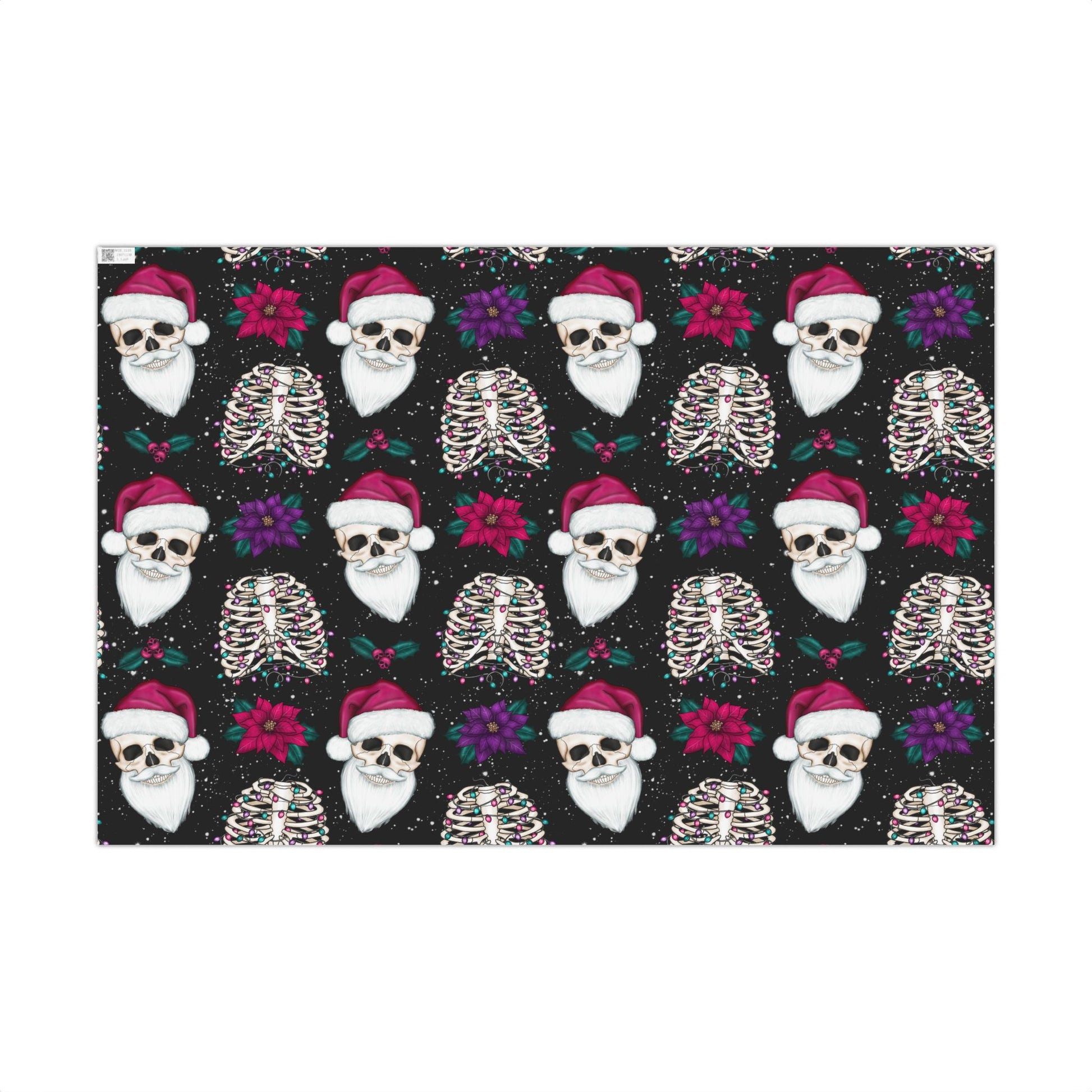 Our eco-friendly goth Christmas Santa Skull Creepmas gift wrap transforms the act of gift-giving into a whimsical and opulent spectacle. Whether you're celebrating the holidays, a special occasion, or simply reveling in the art of presenting gifts, this extraordinary wrapping paper adds a touch of grandeur and kitsch to your festivities.