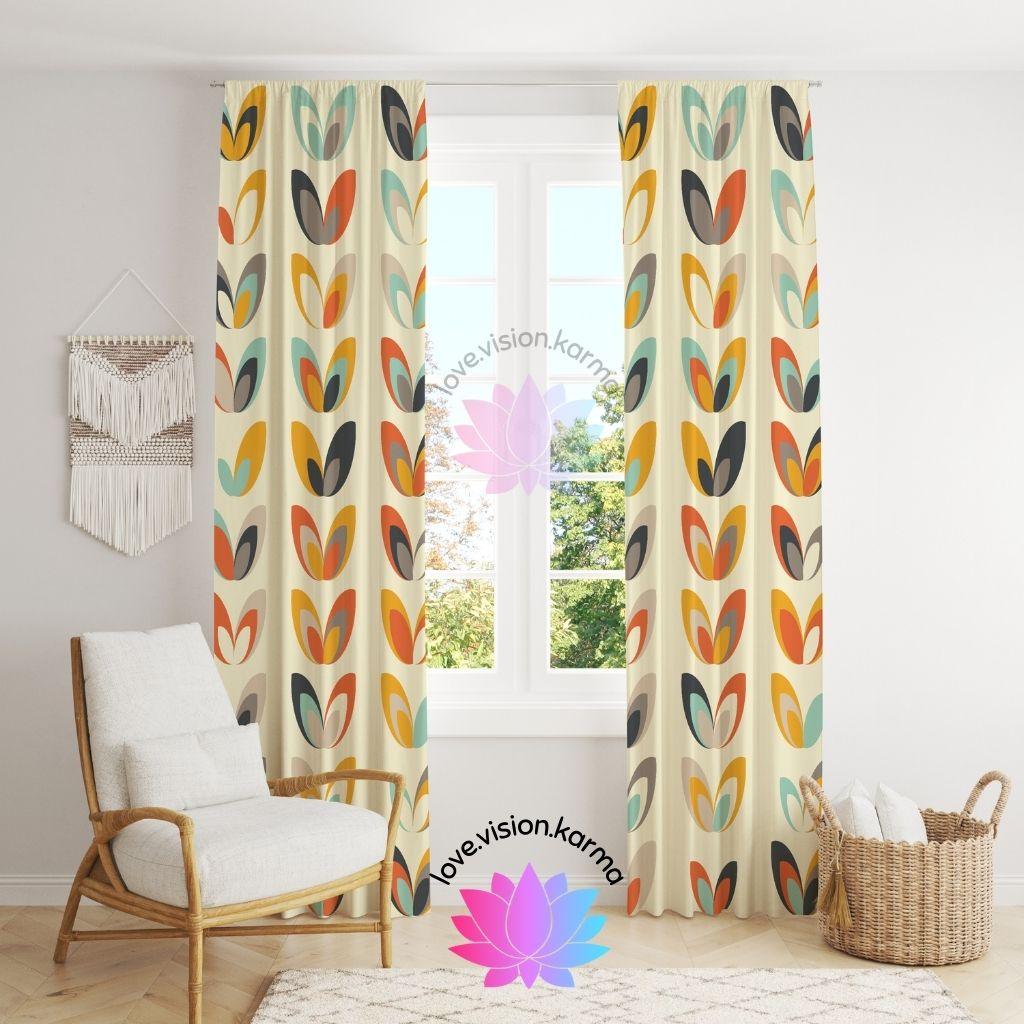 Retro Danish Flowers Scandi Mid Century Multicolor Curtains