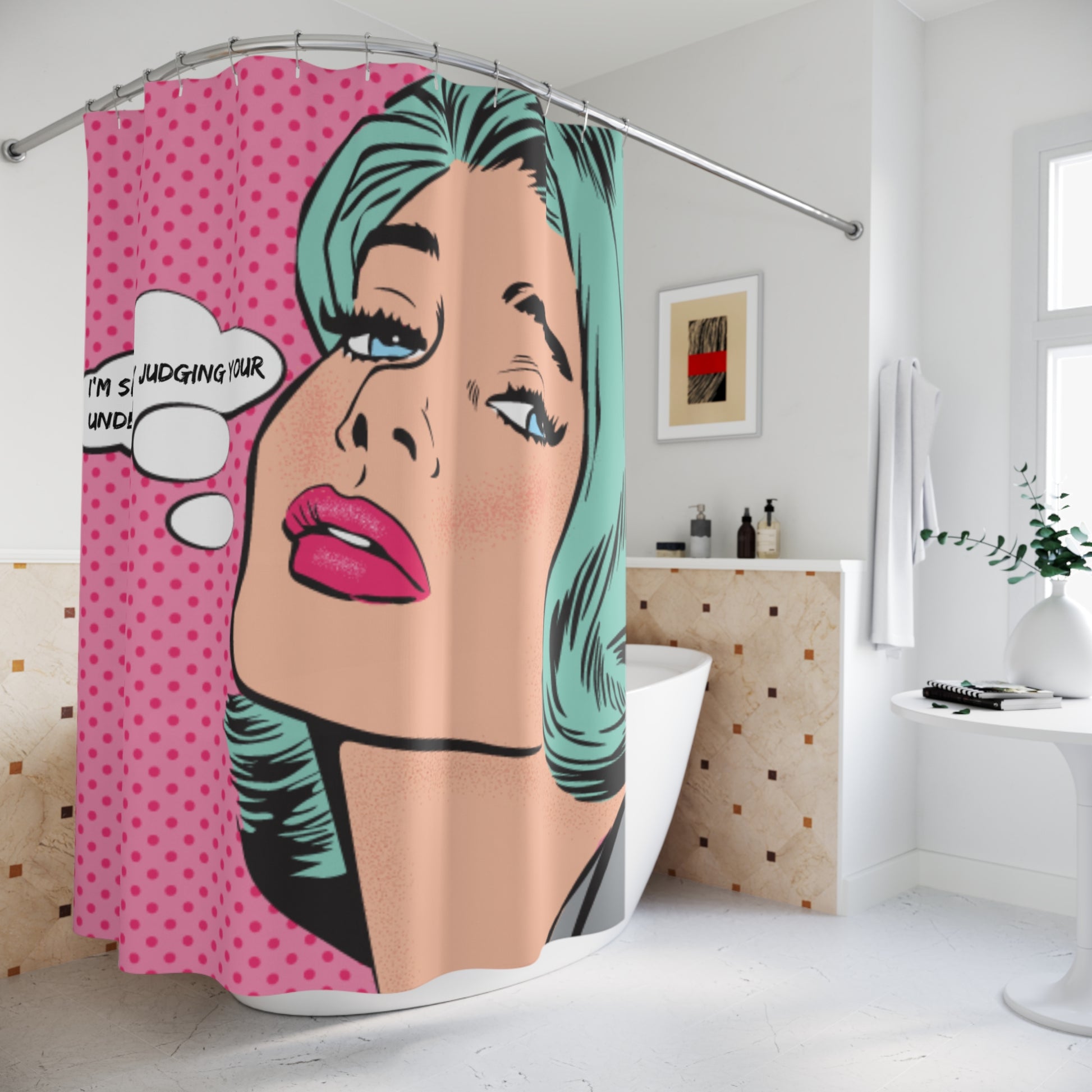 "Silently Judging" Comic Pop Art Funny Shower Curtain
