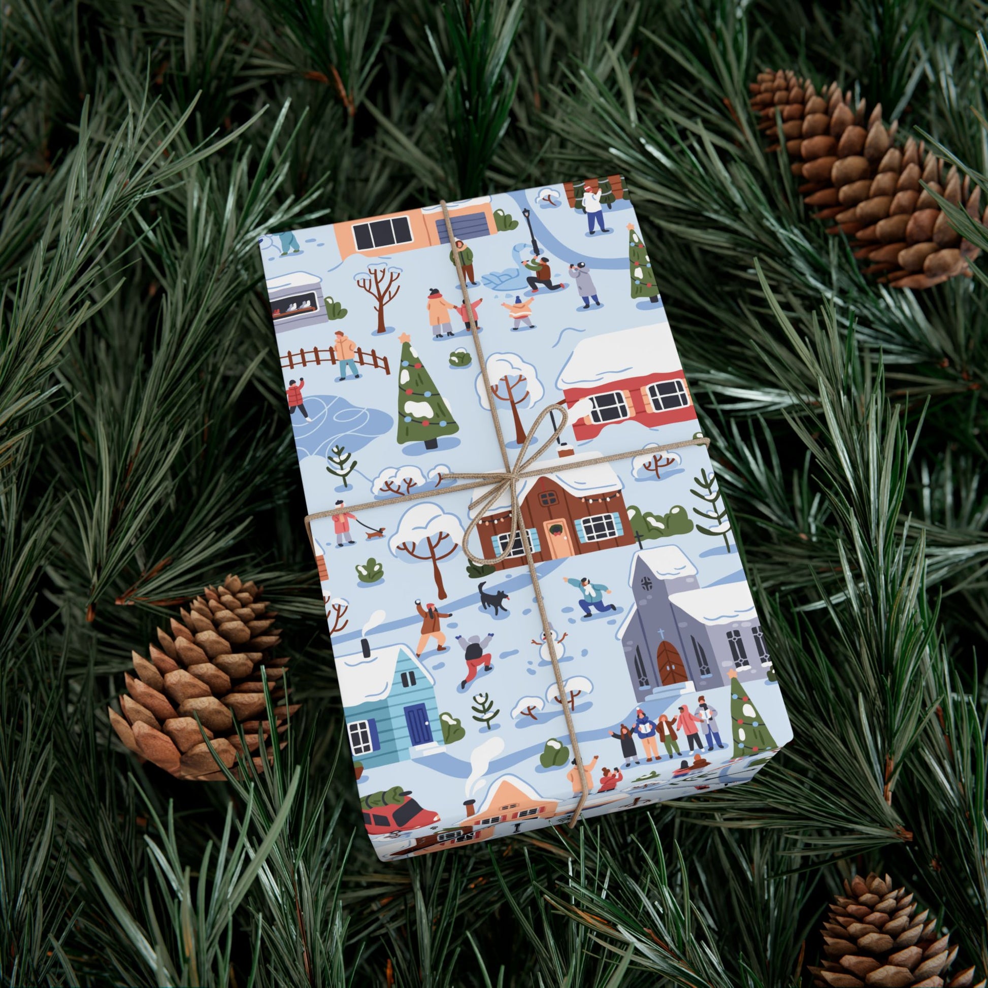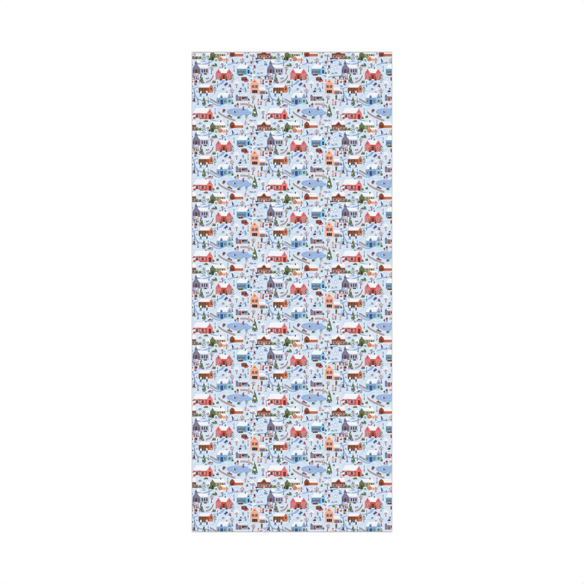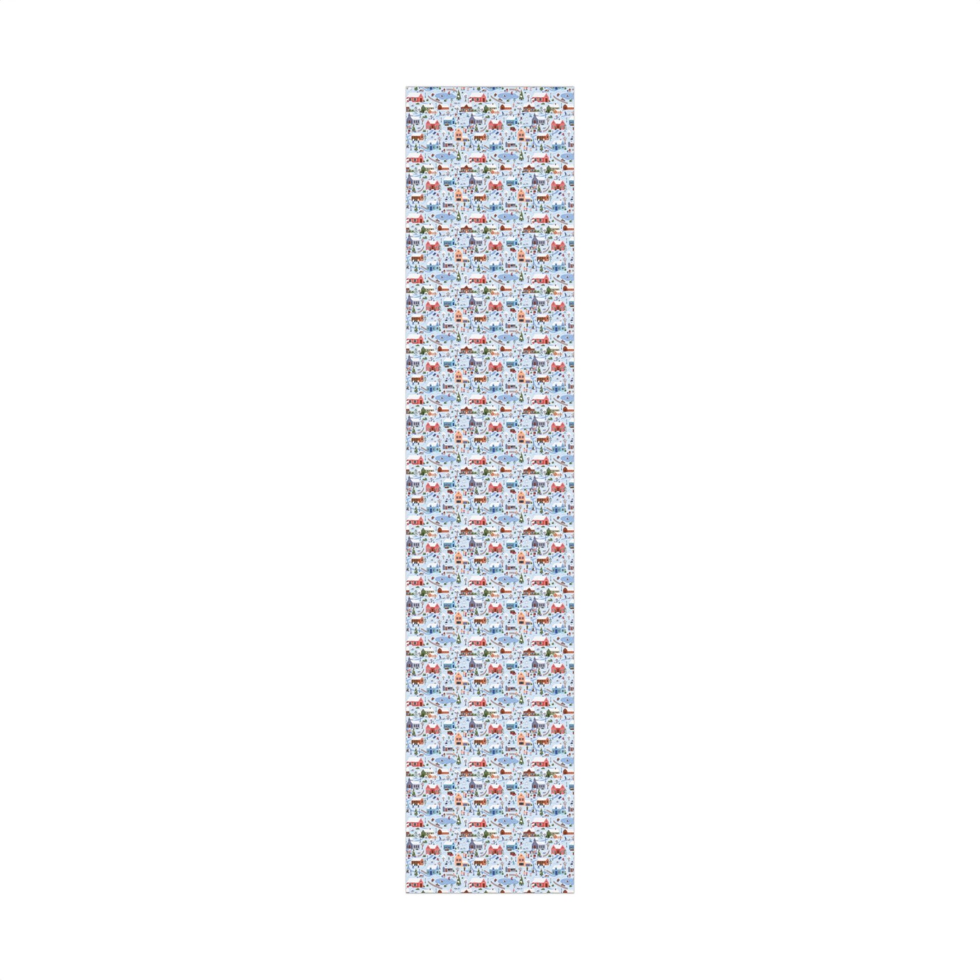 Small Town Christmas Village, Retro Vintage Winter Scene, Multicolor Eco-Friendly Gift Wrap