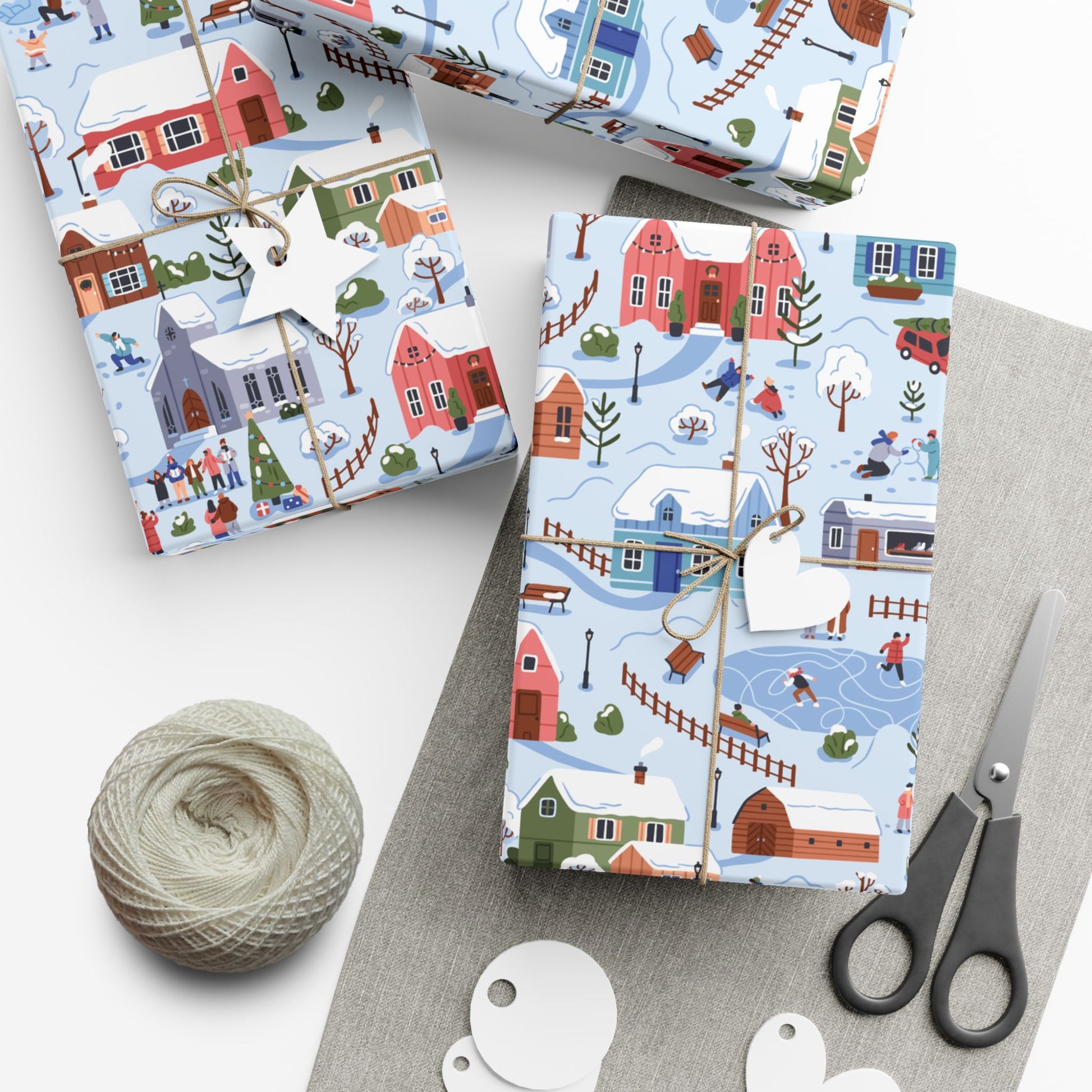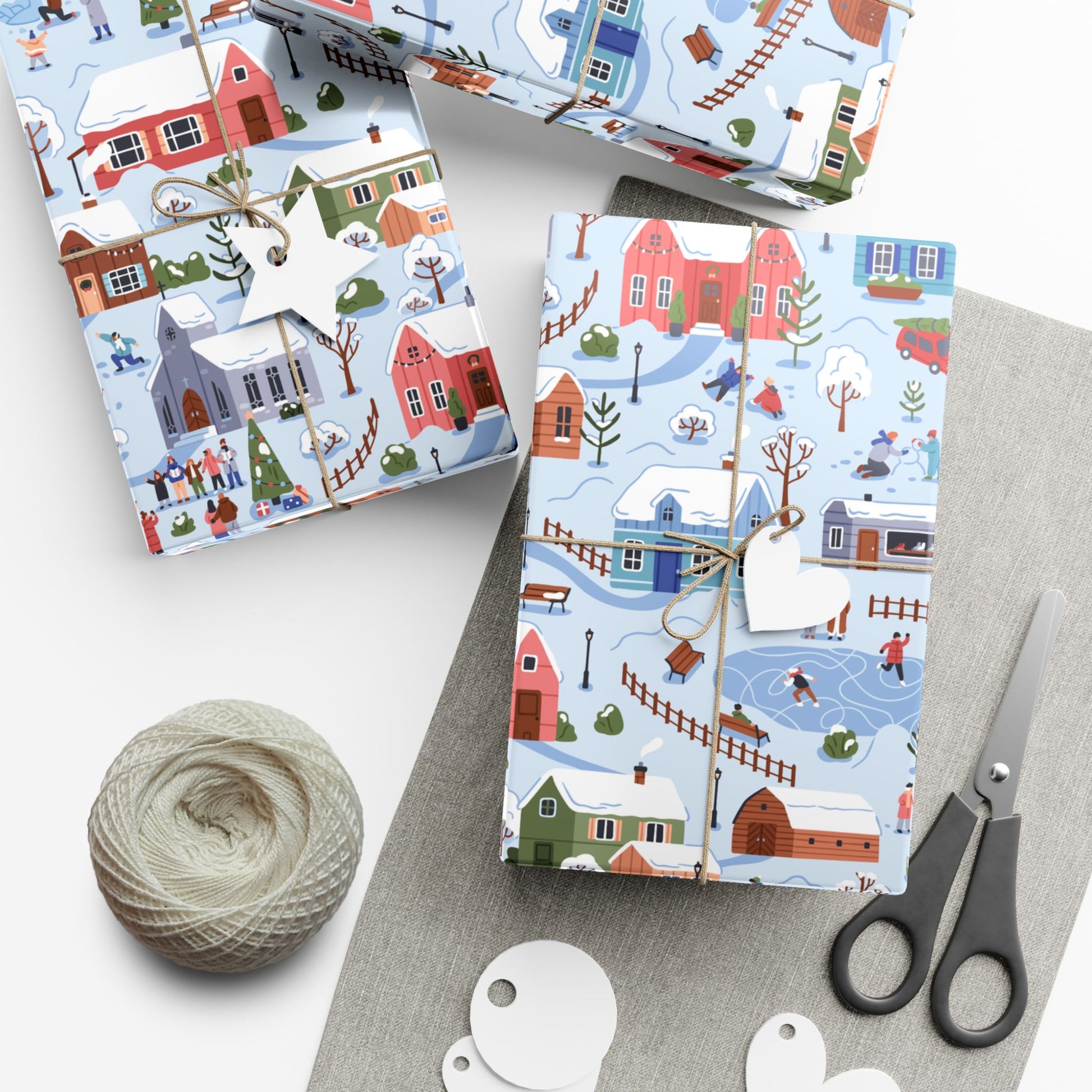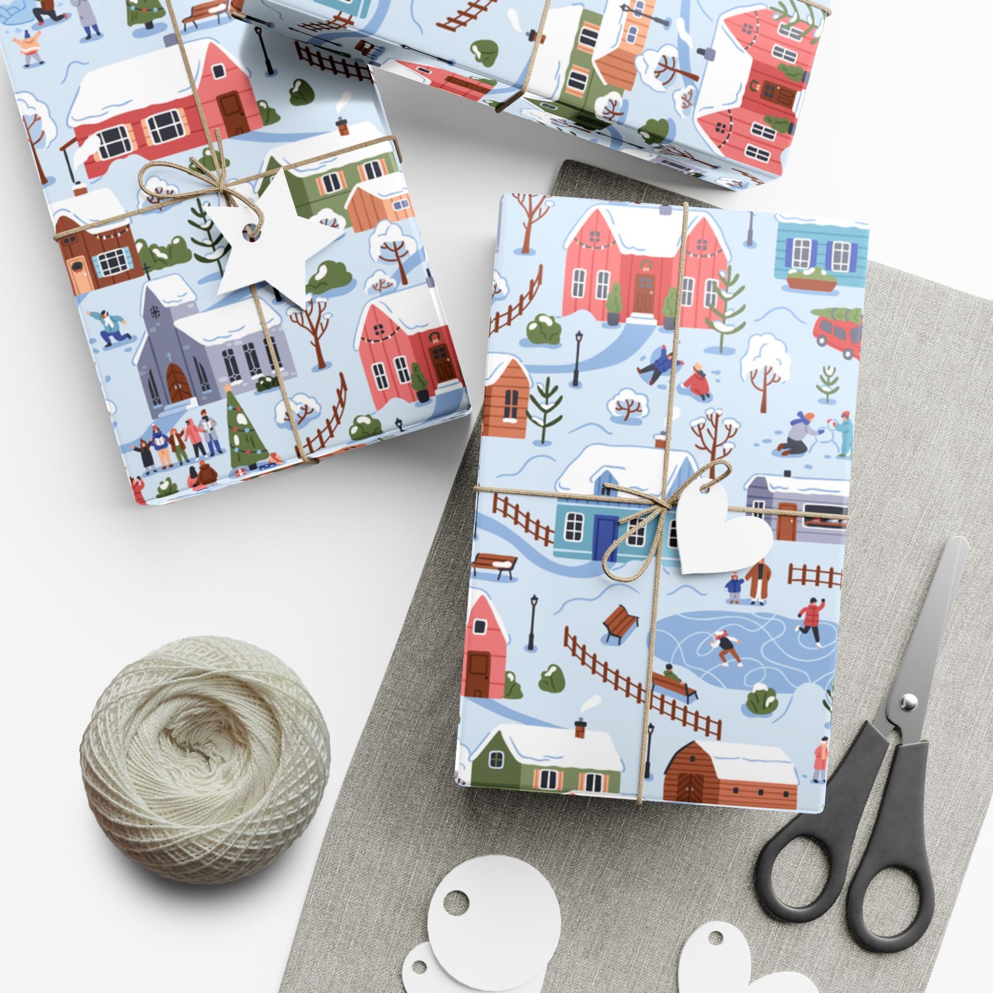 Small Town Christmas Village, Retro Vintage Winter Scene, Multicolor Eco-Friendly Gift Wrap