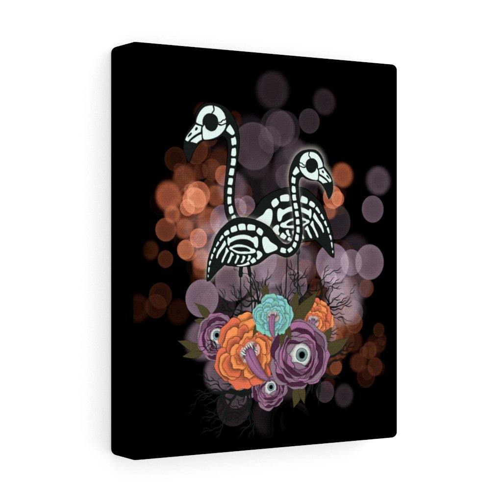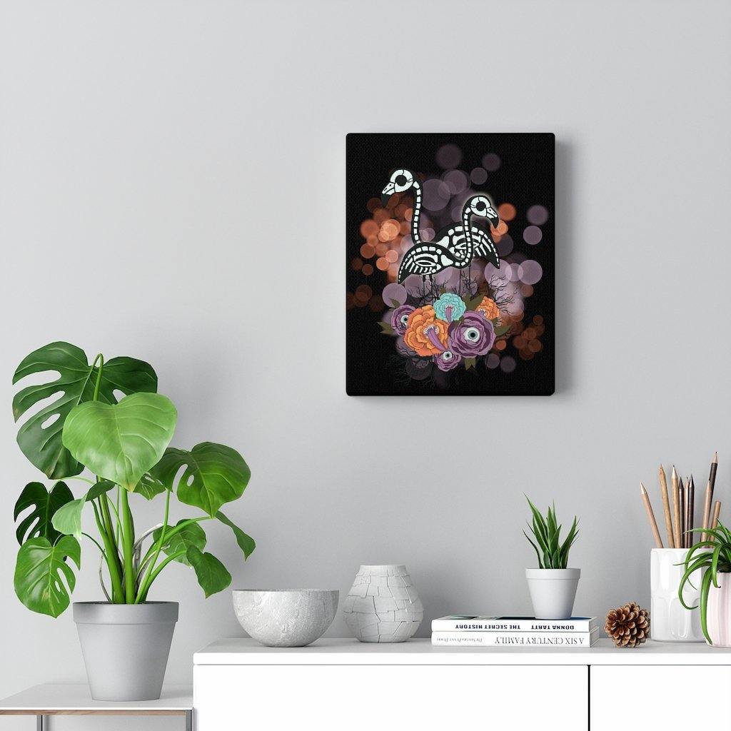 Spooky Skeleton Flamingos & Creepy-Eyed Flowers Canvas Art | Indoor Halloween Decor