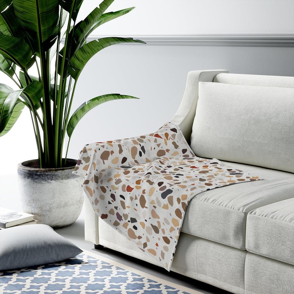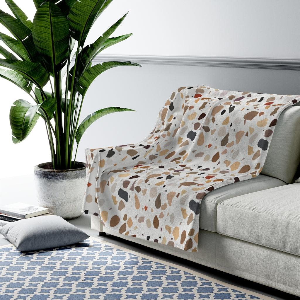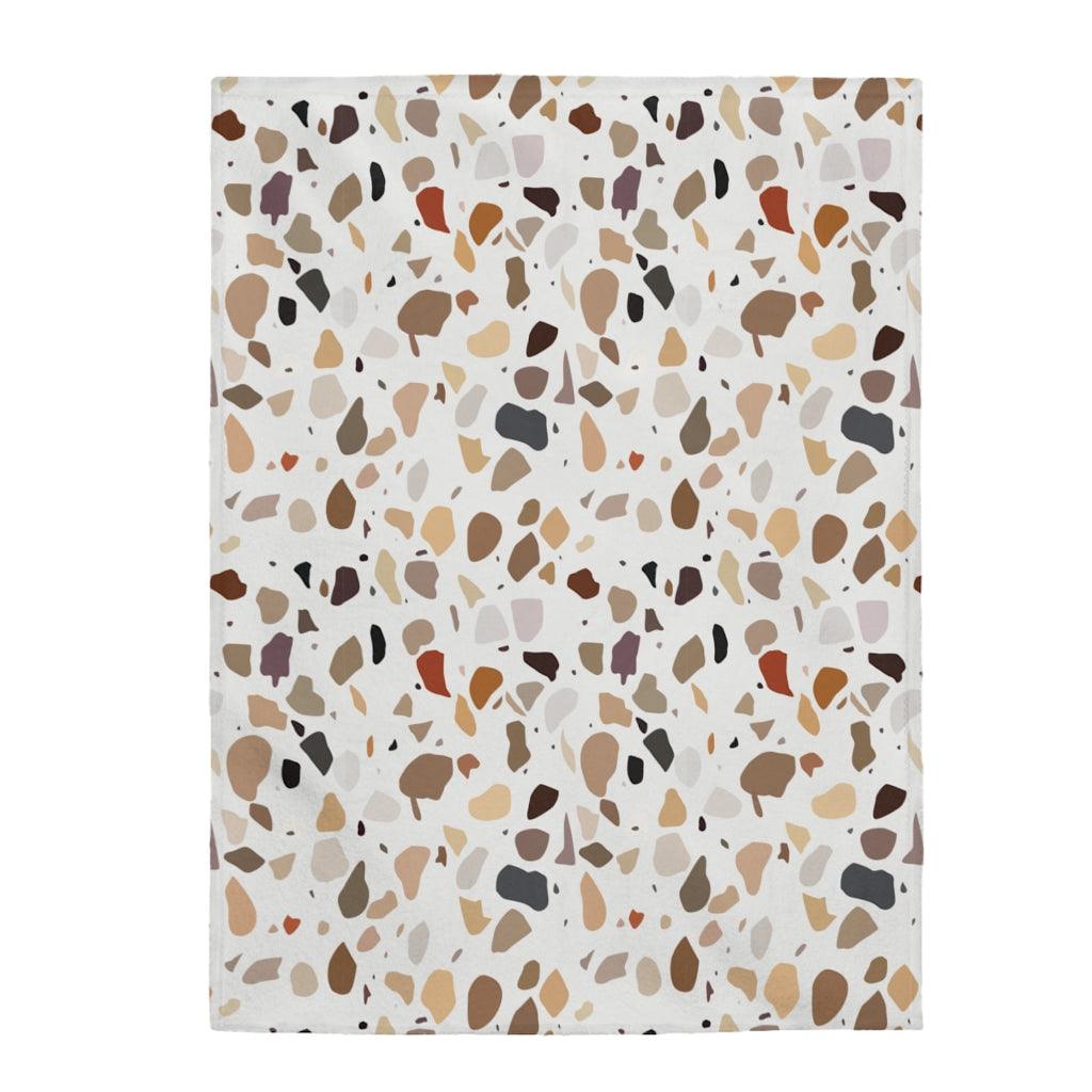 Terrazzo Print Brown Modern Minimalist Velveteen Lightweight Blanket