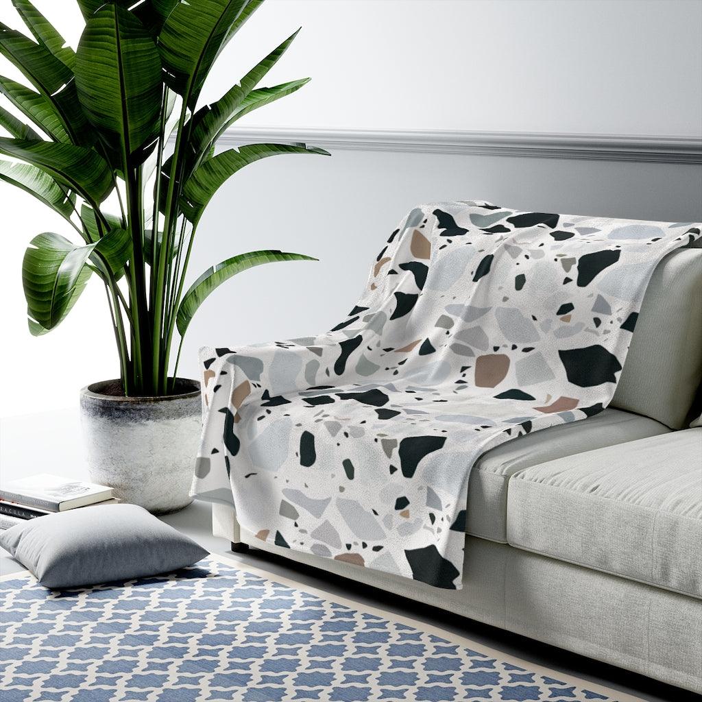 Terrazzo Print Modern Minimalist Velveteen Lightweight Blanket