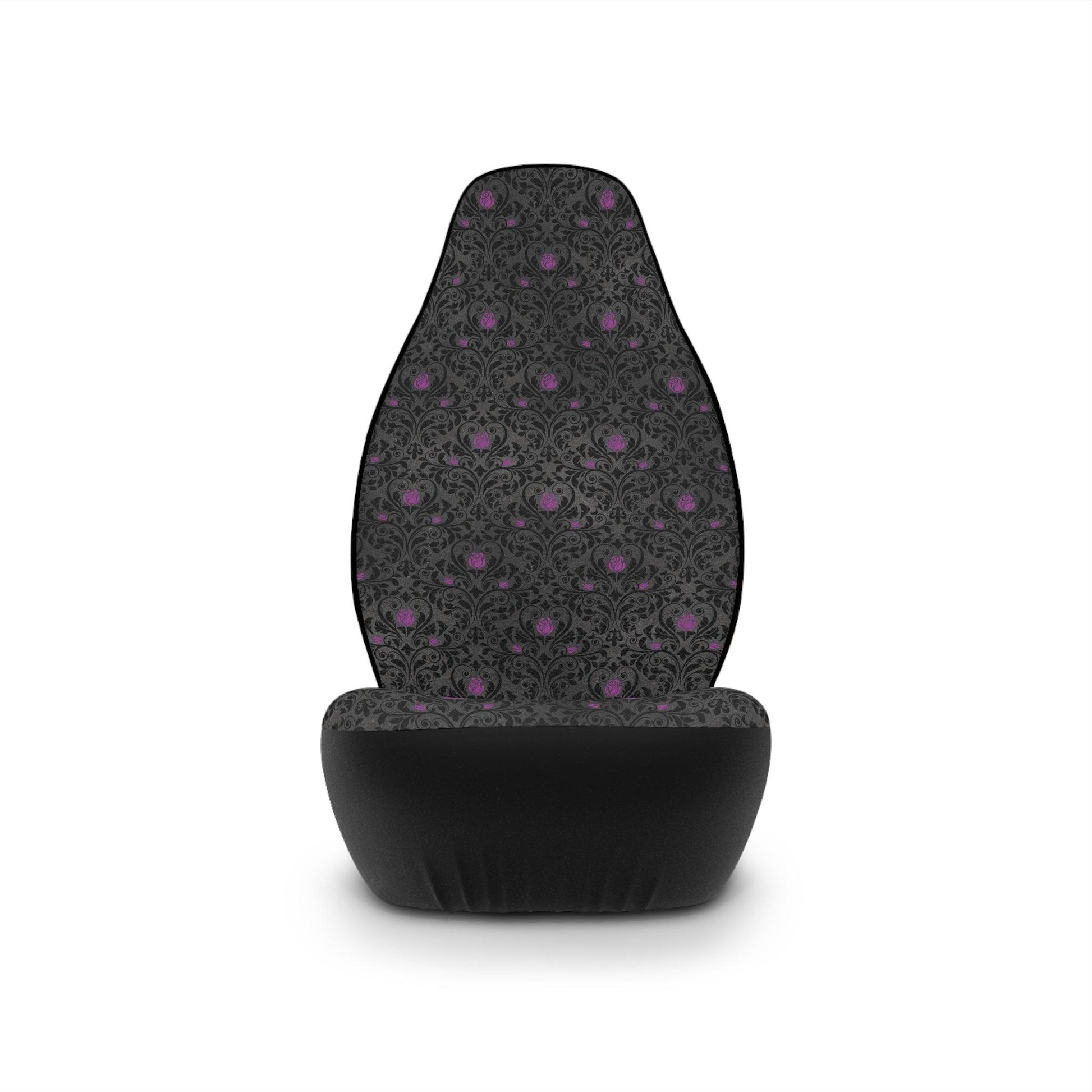 Customize your car's interior with our Victorian goth damask car seat covers that reflect your dark academia or glam goth style. Made of thick, high quality polyester fabric for durability that lasts. Sold as a set of TWO. Important to note that these covers should NOT be used on seats with side airbags or armrests.