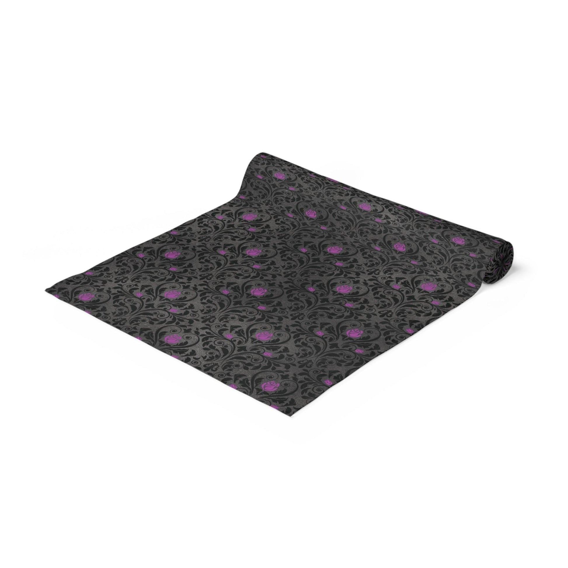 Victorian Goth Damask Purple & Black, Halloween Dark Academia Table Runner