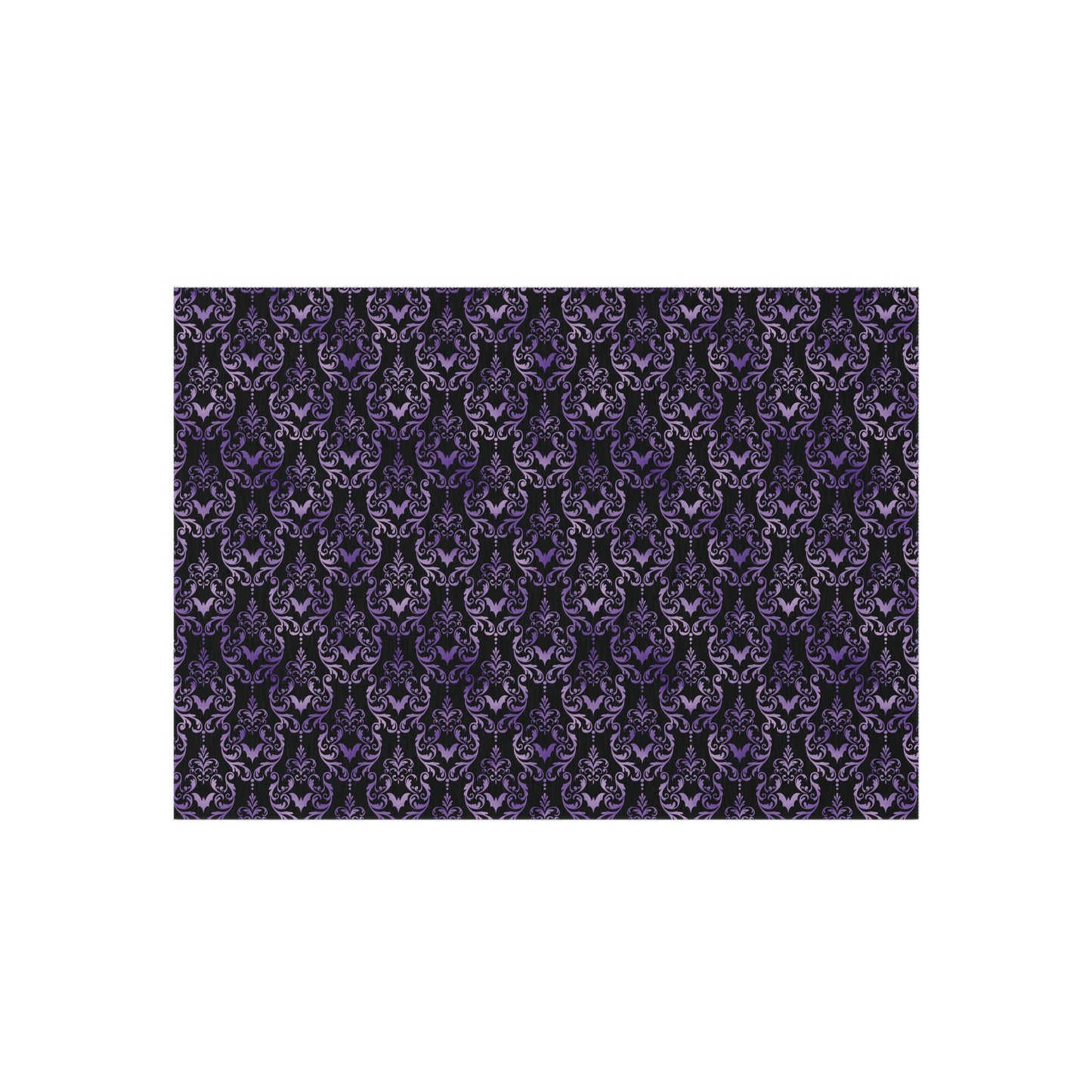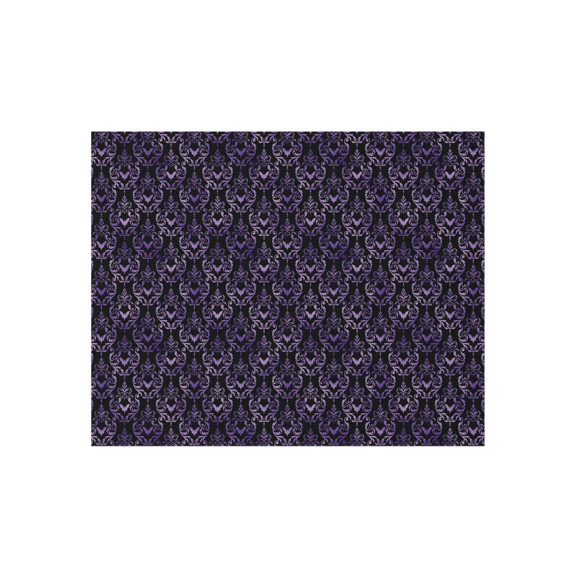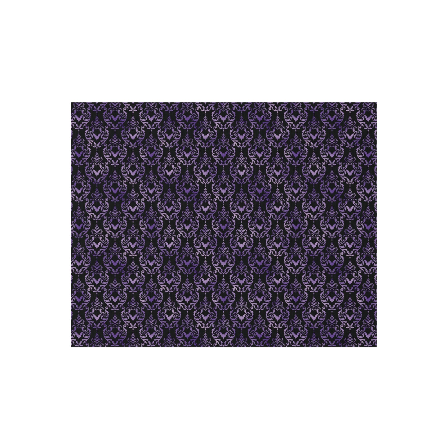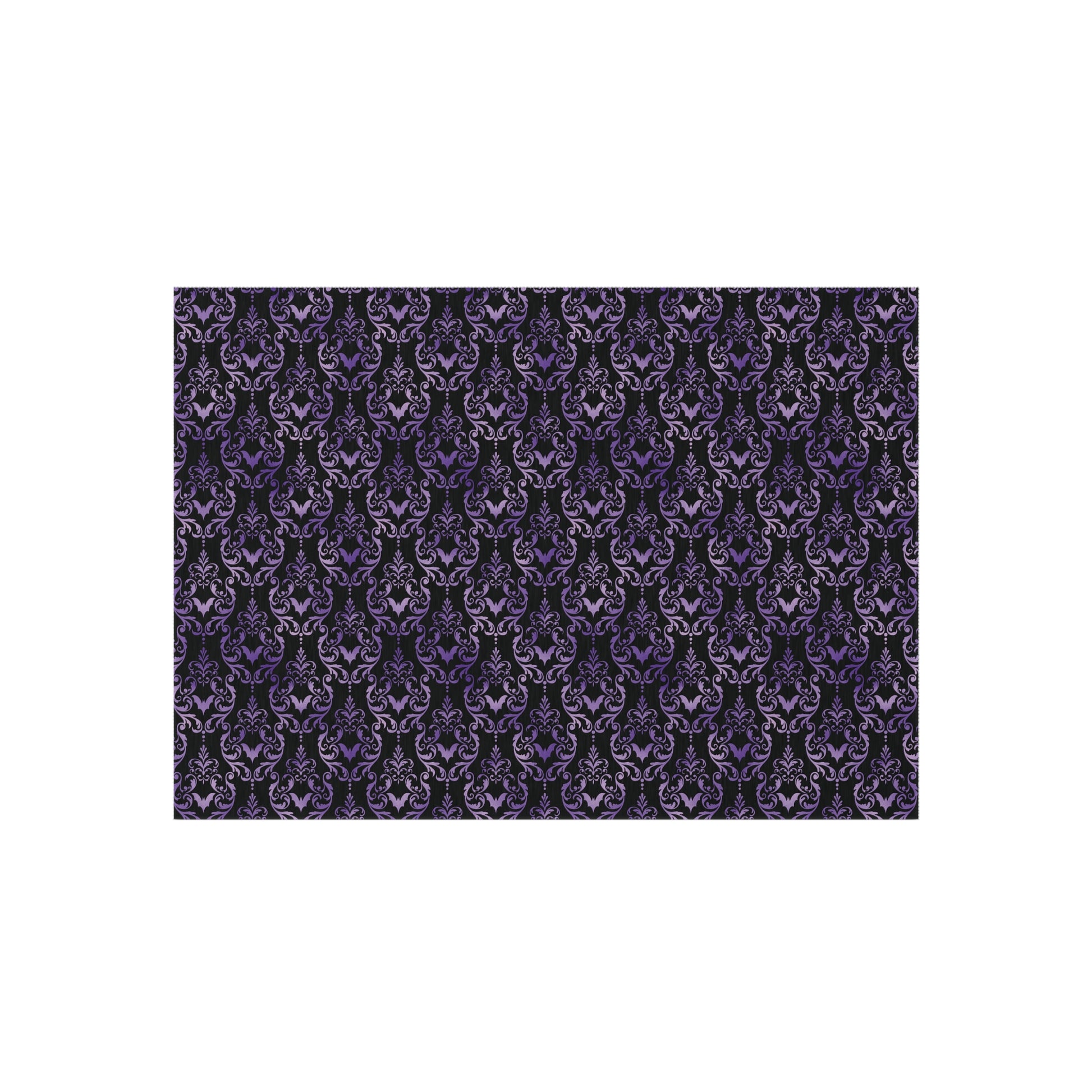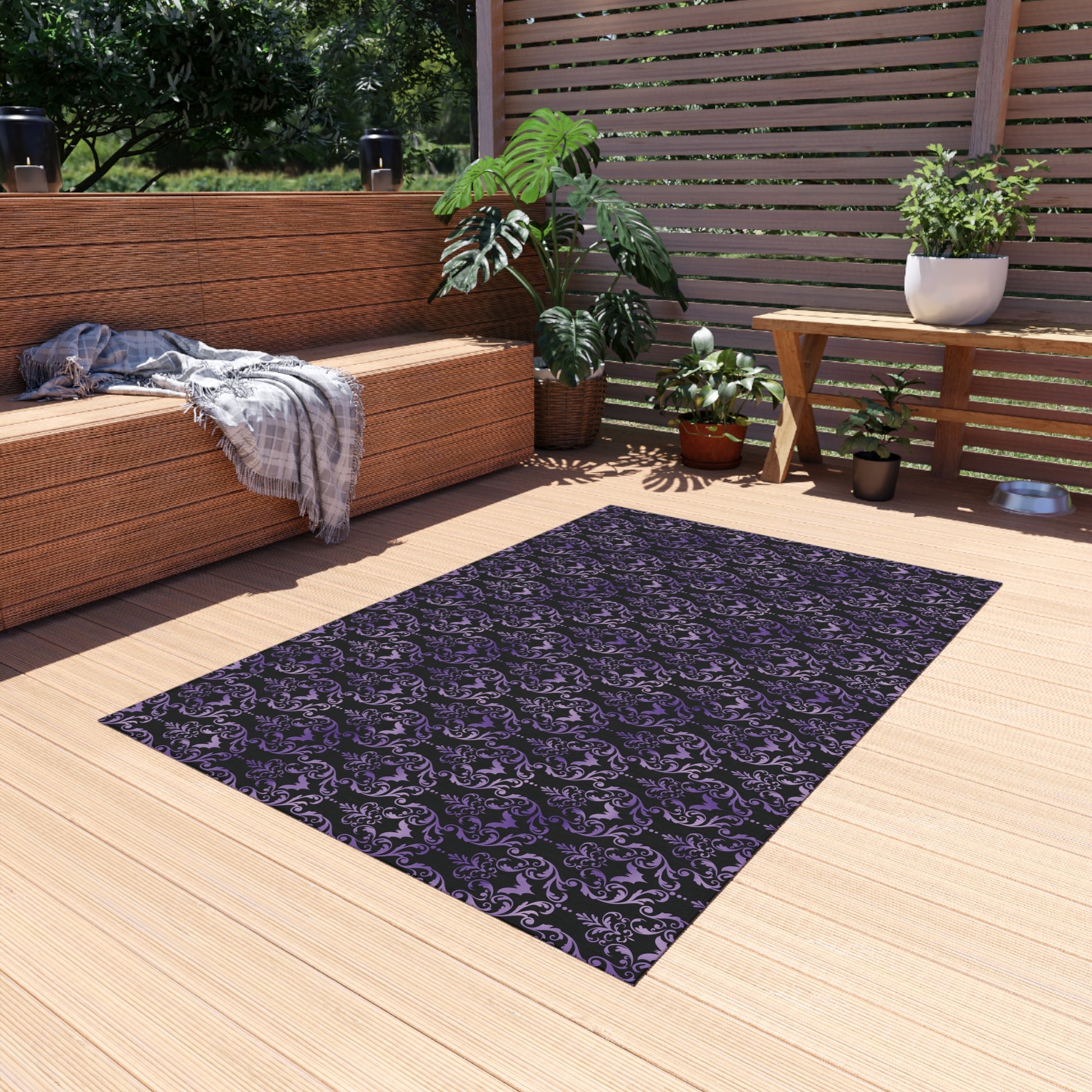 This low-pile, indoor/outdoor accent rug features a Victorian goth inspired, bat damask design in purple and black, to add a touch of mystique to your dark academia bedroom, glam goth living room or outdoors in your enchanting garden!